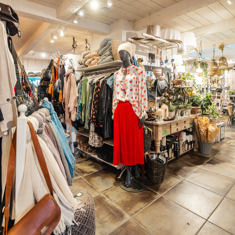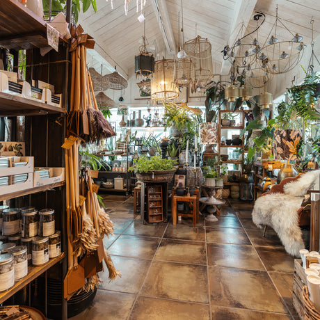 I butiken hittar du allt möjligt, högt och lågt! Fina krukväxter och inredning såsom lampor, speglar och lyktor. Ett utvalt sortiment av kläder, smycken och sjalar. Här hittar du också blandat med godsaker. Perfekt för presenter! Här finns möjligheten att förbeställa personligt ihopsatta presentarrangemang och planterade presentblommor. Vi bjuder på inspiration och passion. I smått som stort!