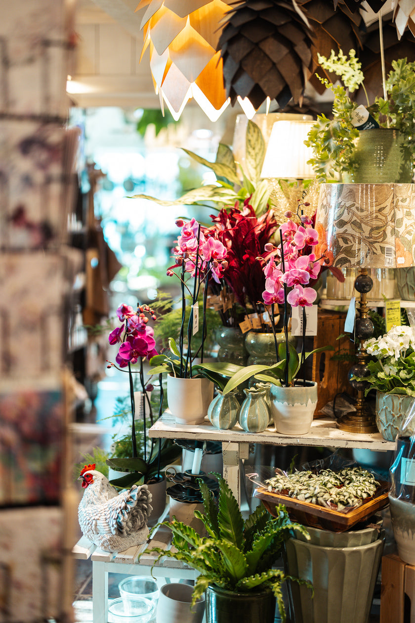 Upptäck ett noga utvalt sortiment med allt från unika inredningsdetaljer och vackra kläder till krukväxter och presentblommor. Allt är valt med omsorg. Letar du efter den perfekta presenten eller något speciellt för dig själv? Vi hjälper dig gärna med inspiration och tips, och hoppas att du ska hitta något som passar just dig!